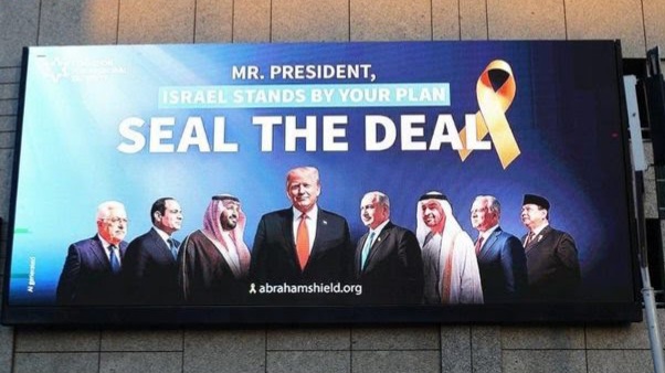 Akun X @AbrahamShield25 menyebut baliho tersebut merupakan kampanye Koalisi Israel untuk Keamanan Regional, sebuah kelompok non-partisan yang beranggotakan lebih dari 120 tokoh senior bidang keamanan, kebijakan, dan ekonomi Israel. Kampanye itu disebut bertujuan mendorong dukungan terhadap inisiatif Trump guna mengakhiri perang di Gaza sekaligus memperluas Perjanjian Abraham.