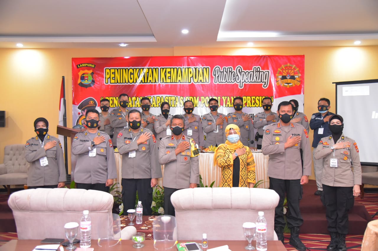 ” supaya anggota Polsek, Polres serta Polda Lampung dapat berbicara serta menyampaikan informasi kepada media dan khalayak masyarakat dengan baik.